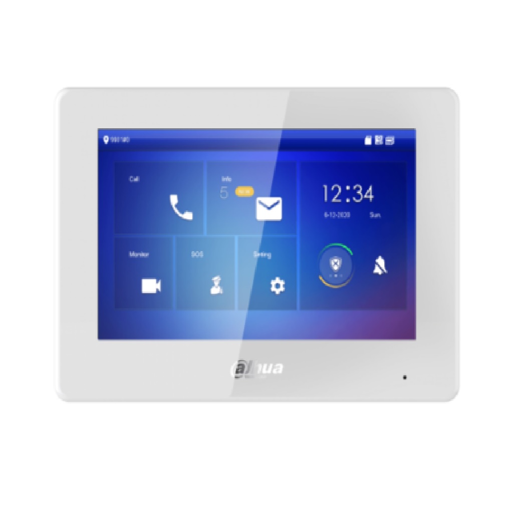 Monitores, Vídeo Porteros, VIDEO PORTEROS Y CONTROL DE ACCESOSMonitor Interior 7″ de Superficie para Videoportero IP Pantalla Táctil PoE SD 6E 1S Alarma Blanco